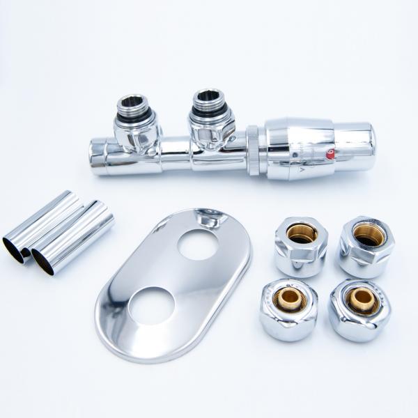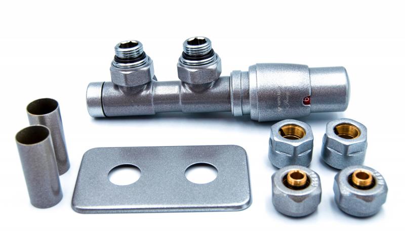 Цей універсальний набір також включає в себе всі компоненти, необхідні для Ваших потреб в установці: 1 термостатичне з'єднання (ліве або праве), 1 термостатична головка "Prestige", "Picco" або "Tucan" 1 комбінована маскувальна розетка (кругла або прямокутна), 2 маскувальні втулки і 2 адаптера/з'єднувача для PEX або Cu. Все, що потрібно для вашого унікального проекту!