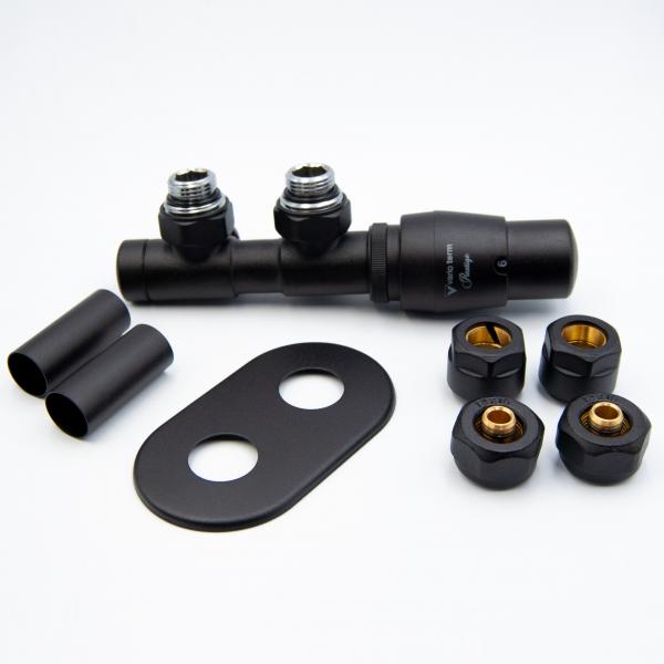 Комплект Vario Term Twins ALL IN ONE - це ідеальне рішення для Ваших радіаторних потреб. Цей набір "TWINS" пропонує велику функціональність, оскільки він поставляється з нижнім підключенням, патрубками з відстанню 50 мм і декількома функціями для регулювання потоку води, включаючи функцію відключення води. Завдяки своїм розмірам GZ ¾ "/ GW ¾", цей набір є відмінним вибором як для побутового, так і для комерційного застосування.